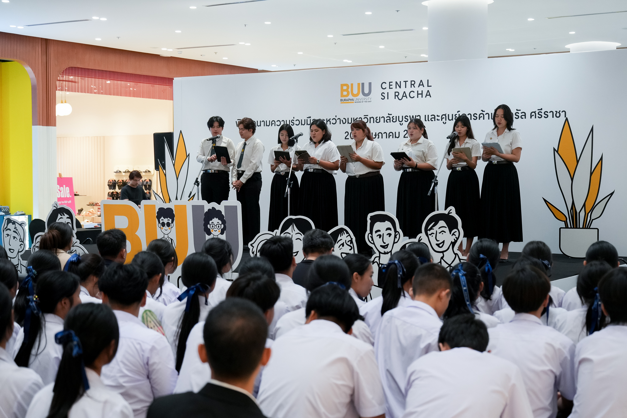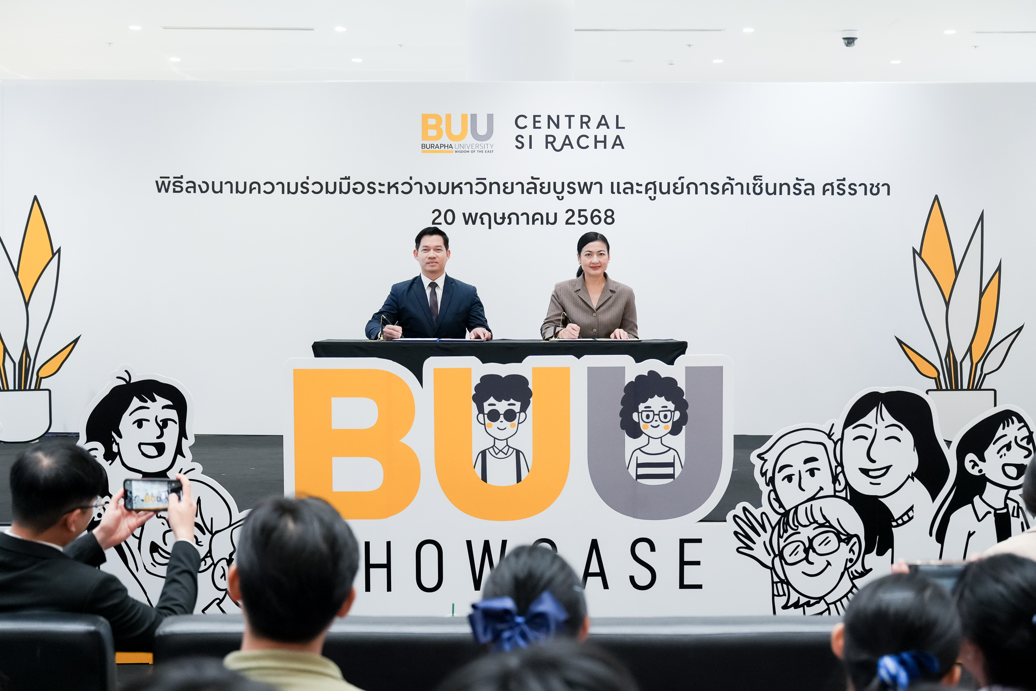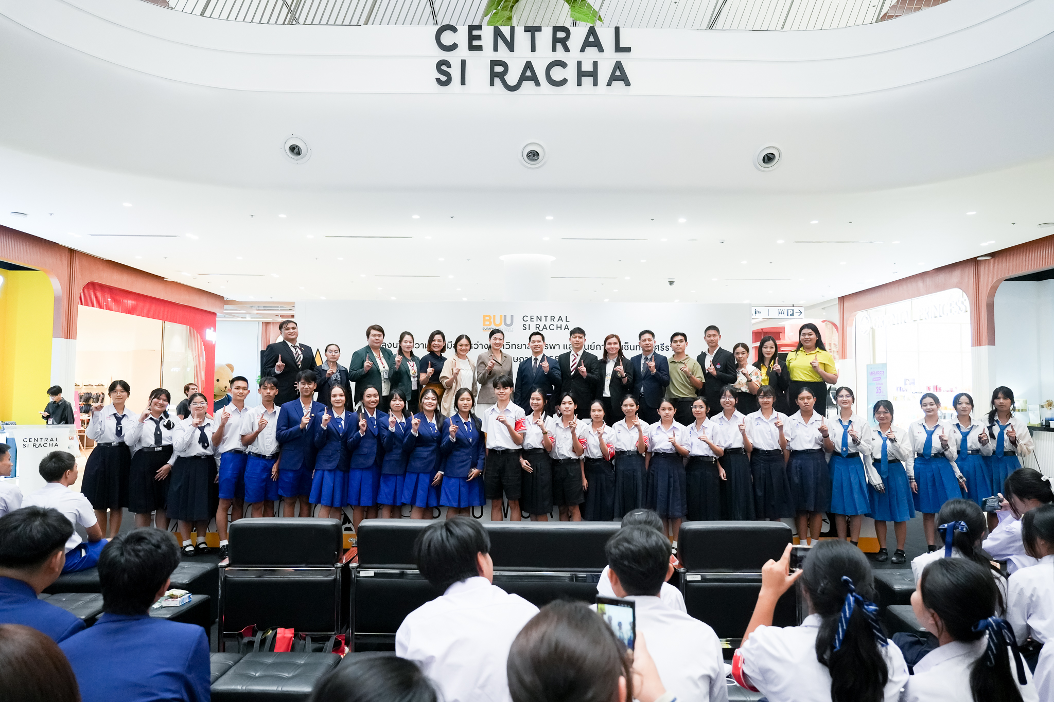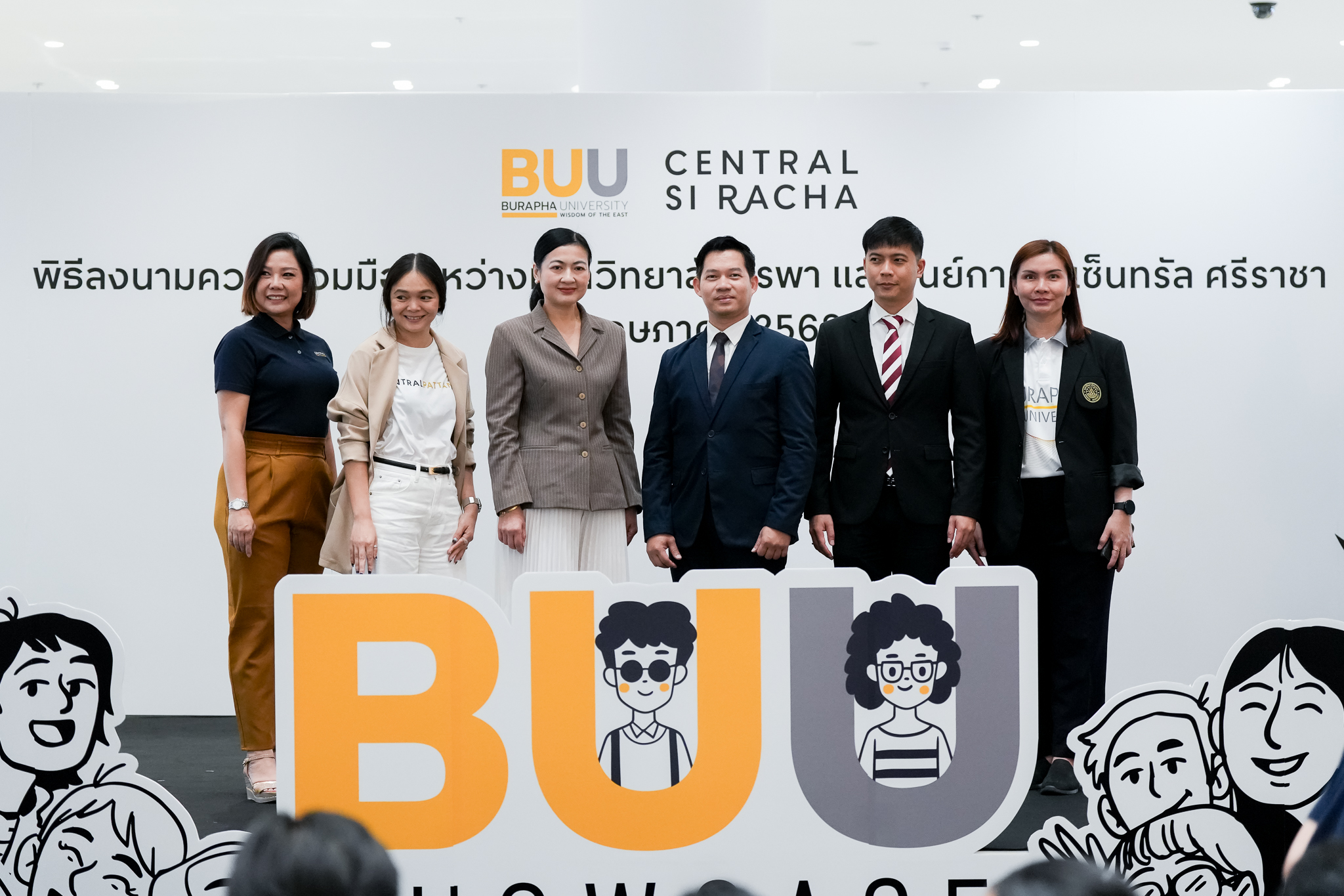 Burapha University, through the Division of Student Affairs, signed a Memorandum of Understanding (MOU) with Central Si Racha on Tuesday, May 20, 2025, at Central Si Racha, Chonburi Province. The collaboration, led by Asst. Prof. Parinya Nakpathom, Ph.D., Vice President for Student Development and Alumni Relations, and Mr. Pongsathon Kaewmanee, Assistant President for Student Development and Alumni Relations, aims to provide students with a platform to gain hands-on entrepreneurial experience by operating booths for product sales, conducting promotional activities, and showcasing their talents — all free of charge.