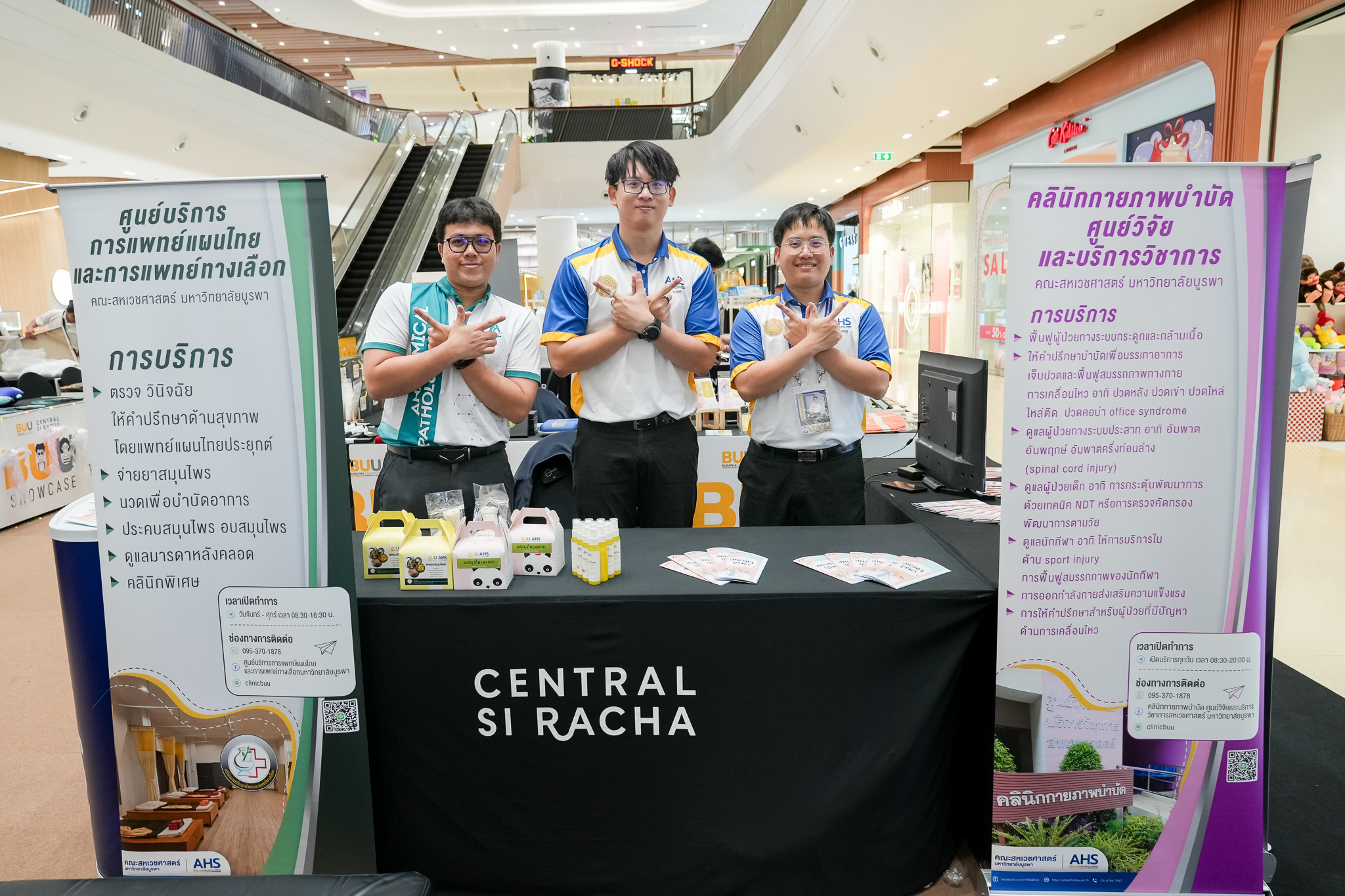 The event featured exhibitions and product sales from student-led shops and various university faculties, such as the Faculty of Gemology, Faculty of Allied Health Sciences, Faculty of Fine and Applied Arts, Faculty of Humanities and Social Sciences, and the Institute of Marine Science, along with the Burapha University Cooperative Shop and start-ups nurtured by the Eastern Science and Technology Park (EAST Park). In addition, the event was enriched by a performance from the MUPA Choir of the Faculty of Music and Performing Arts, adding vibrancy and a lively atmosphere.