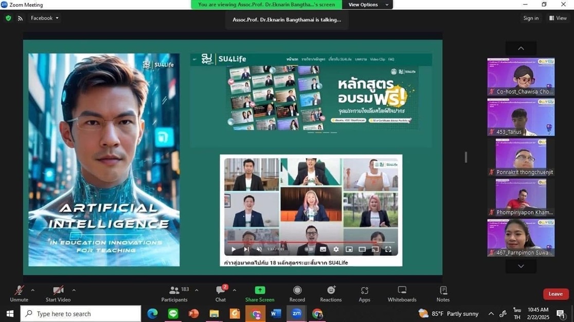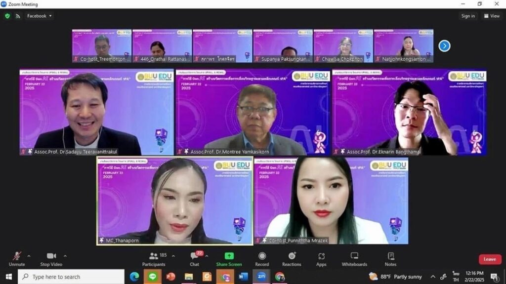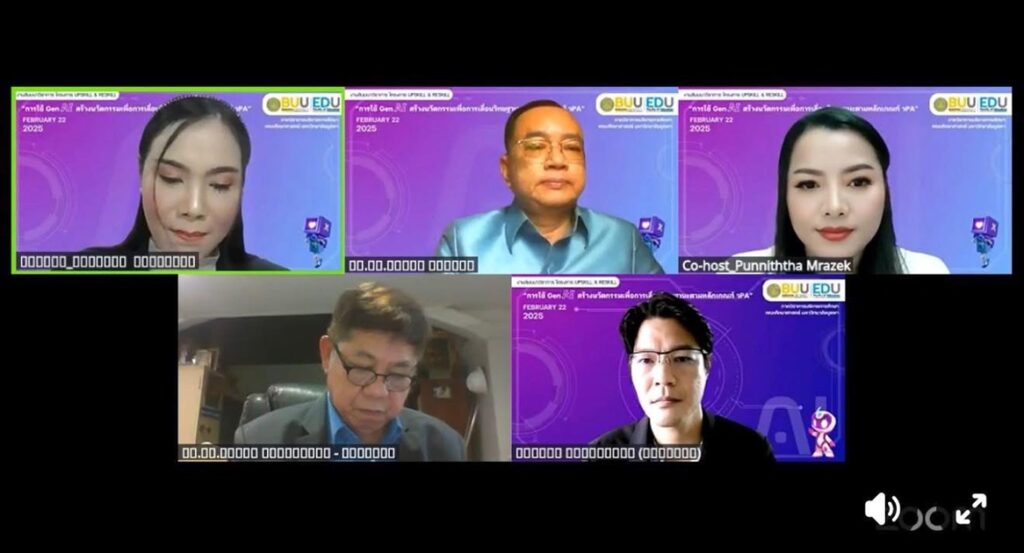 The Department of Educational Administration, Faculty of Education, Burapha University, organised an academic seminar titled “Utilising Generative AI to Drive Innovation for Professional Advancement under the New PA Framework”, held on Thursday, February 22, 2025, from 08:30 to 12:00 p.m. The event was conducted in a fully online format via Zoom Cloud Meetings and the Facebook Fanpage of the Department of Educational Administration.