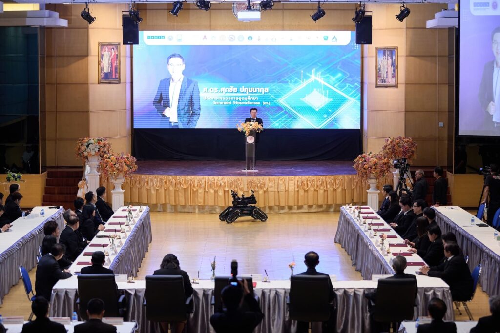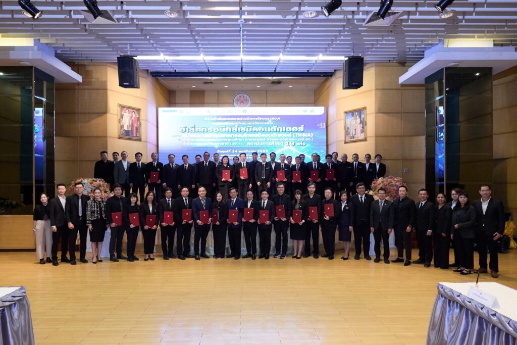 The project was launched through a formal signing of an academic collaboration agreement with key partners: the Thai Semiconductor Industry Trade Association, the MHESI Permanent Secretary’s Office, the National Research Council of Thailand (NRCT), and 19 network universities. The agreement defines cooperation in research, workforce development, academic activities, knowledge transfer, and shared support for data, space, tools, and equipment to advance microelectronics development at the national level.
