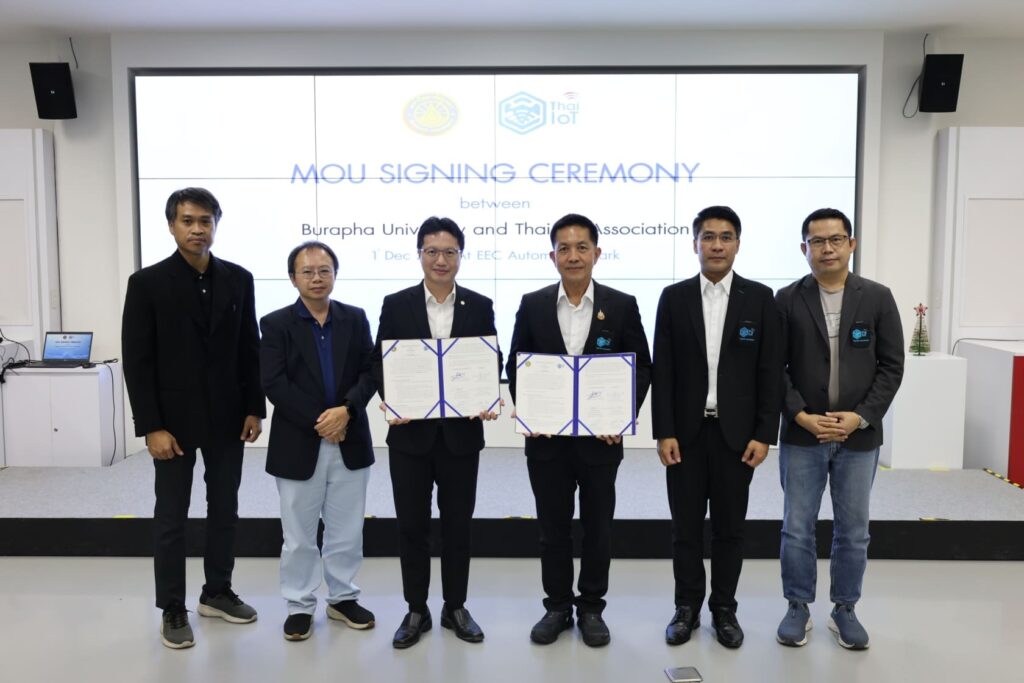 The Faculty of Engineering, Burapha University, established an academic collaboration with the Thai IoT Association to integrate academic knowledge, research, and real-world industrial experience into student learning through short training programs, internships, cooperative education, and innovation development using IoT foundations. This partnership strengthens students’ job-readiness and competitiveness while supporting regional industrial and economic development through sustainable knowledge and technology transfer.