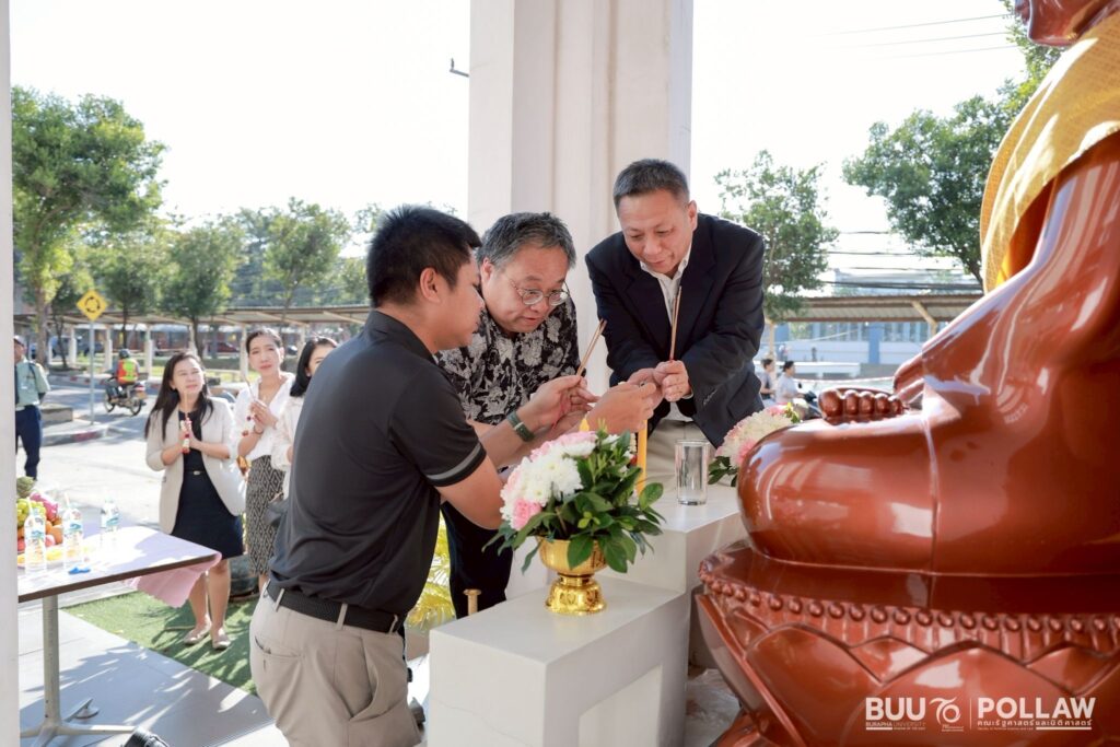 The project is implemented as a cultural and community-building activity to celebrate the New Year and preserve Thai traditions. Preparation involves coordinating with relevant units, arranging the venue, and inviting faculty members, staff, and participants to join. On the event day, the main activities include Buddhist merit-making ceremonies, offering meals to monks, having a shared lunch to strengthen relationships, donating reusable items to support social benefit projects, and carrying out collective cleaning activities to foster shared responsibility. After the event, the outcomes are summarized and evaluated to improve future activities.