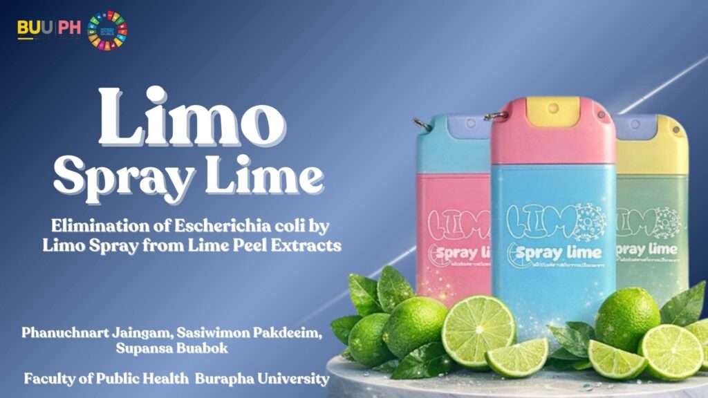 The innovation highlights the potential to transform agricultural waste into environmentally friendly public hygiene solutions. By utilising lime peel extract in a spray formulation to reduce microbial contamination on surfaces commonly found in public restrooms. The project supports several SDGs, particularly responsible consumption and production (SDG12), good health and well-being (SDG3), and partnerships for sustainable development (SDG17), reflecting Burapha University’s commitment to advancing sustainability through student-led innovation.