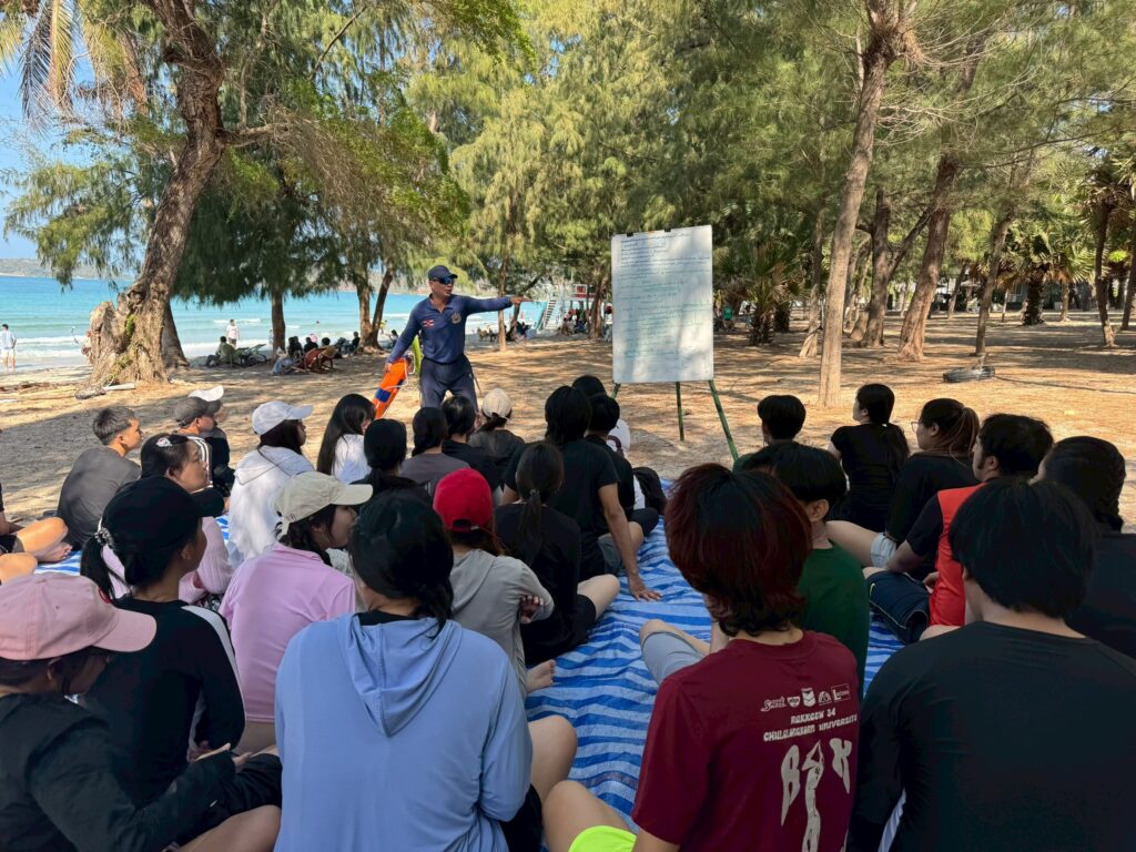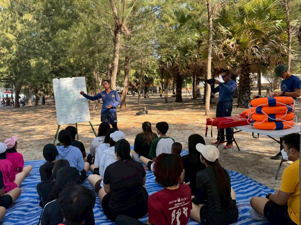 The Tourism and Hospitality Program, Burapha Business School, Burapha University, organised a field-based learning activity titled “Marine & Coastal Learning Journey: Exploring Marine and Coastal Knowledge and Learning Water Safety for Tourism Activities.” The activity was conducted as part of the course 66240564 Coastal and Marine Tourism, as part of the program’s experiential learning approach. The course aims to provide students with knowledge and understanding of marine and coastal ecosystems, marine tourism activities, and sustainable use of marine resources. In addition, the activity was designed to enhance students’ awareness of safety management in marine tourism, including first aid and water-rescue practices for tourists engaged in water-based activities. This educational initiative also aligns with the United Nations Sustainable Development Goals (SDGs), particularly SDG 3 (Good Health and Well-being), SDG 13 (Climate Action), and SDG 14 (Life Below Water), by promoting water safety awareness, environmental responsibility, and sustainable marine tourism practices.