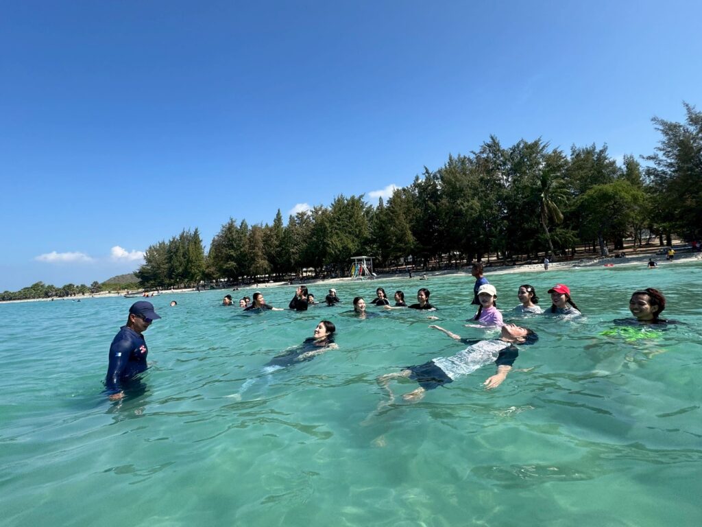 The field-based learning activity was conducted at the Naval Special Warfare Command in Sattahip District, Chonburi Province, where students learned directly from professionals and gained hands-on experience. The program was supervised by Ms Wannapa Udompon, with additional academic support and supervision from Dr Sanon Anantanond and Miss Thanyarat Dumklang, lecturers in the Tourism and Hospitality Program. During the program, 33 students enrolled in the course participated in several learning activities, including: A lecture and demonstration on first aid and water rescue techniques for tourists participating in marine activities, delivered by professional instructors from the Naval Special Warfare Command Learning about marine and coastal ecosystems and key coastal resources Participating in snorkeling activities to observe marine resources and understand responsible marine tourism practices Experiencing real-world learning related to safety management in marine tourism environments These activities allowed students to integrate theoretical knowledge with real-world practice and develop practical competencies relevant to the tourism industry.