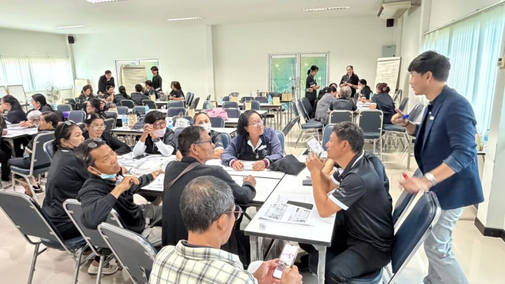 Specialised VHV Training Course: A series of 4 workshops focusing on the impacts of climate change on communicable diseases, disease screening, and health innovation design. Session 1: Lectures on climate change impacts, basic knowledge of disease prevention according to Ministry of Public Health standards, the role of VHVs in surveillance systems, and community risk communication. Session 2: Lectures and workshops on significant community diseases (e.g., Dengue, Chikungunya, Zika, COVID-19, Tuberculosis, Food Poisoning) and practical training on using screening forms, data collection, and public communication. Session 3: Training on disease control and environmental sanitation, and workshops for designing community health innovations and “Disease-Free Saensuk” campaign activities. Session 4: Presentation of community health innovations/projects, summary of results, discussion of obstacles/suggestions, and certificate award ceremony.