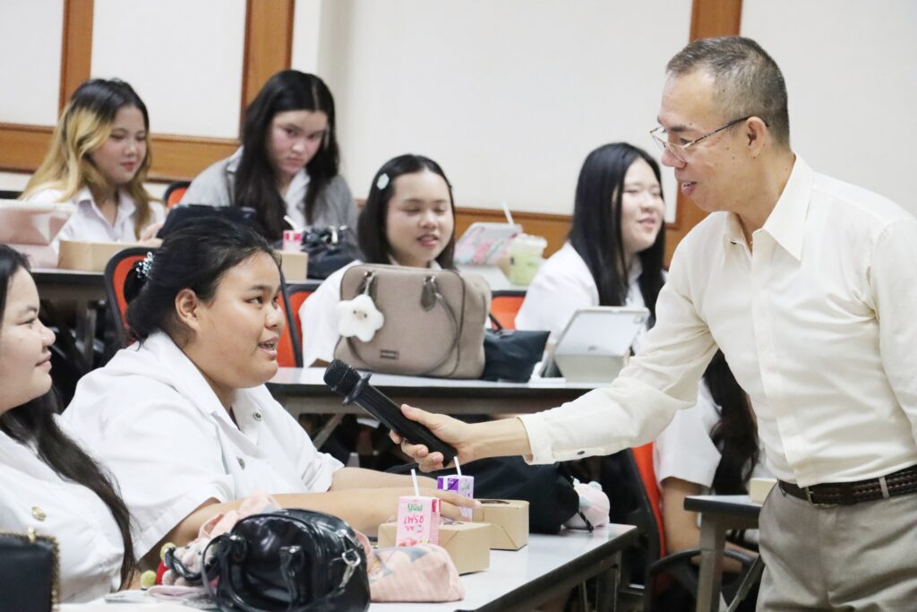 The Fourth-Year Student Orientation Project 2026 organized by the Department of Thai Language was conducted to prepare graduating students for their transition into the professional world. In the context of today’s global society, English plays a crucial role as a tool for promoting intercultural understanding, respect for diversity, and the development of an equitable society, particularly regarding gender equality and the rights of women and children. The appropriate use of English can help reduce gender bias and promote acceptance of diversity in the workplace. Therefore, fourth-year students who are about to graduate need to develop both English communication skills and awareness of gender equality in order to communicate and perform effectively in professional environments, in line with human rights principles and the Sustainable Development Goals (SDGs). The project was organized under the theme “English in the Workplace for Promoting Gender Equality and Supporting the Roles of Women and Children,” contributing to the achievement of Sustainable Development Goal 5 (SDG 5: Gender Equality) while promoting the development of graduates who possess knowledge, professional competencies, and attitudes aligned with multicultural workplaces, social responsibility, and sustainable development.