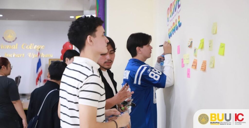 On a day filled with colour, courage, and compassion, Burapha University International College (BUUIC) opened its heart to diversity with the Pride Walk Red Carpet and Pride Wall—a vibrant event held on June 18, 2025, that celebrated identity, inclusion, and the global call for equality. BUUIC transformed into a stage of self-expression as students walked the red carpet with pride. Dressed in bold, expressive outfits and wrapped in rainbow flags. Beside the runway stood the Pride Wall, a space where students could write messages of support, share personal stories, and express their dreams for a more inclusive world. The wall quickly became a mosaic of hope, filled with colourful notes and heartfelt affirmations that echoed the values of SDG 5 (Gender Equality) and SDG 10 (Reduced Inequalities). Faculty members, staff, and community allies joined the celebration, reinforcing Burapha University’s commitment to creating a safe and inclusive environment for all. The event also served as a platform to educate attendees about the importance of the SDGs and how embracing diversity contributes to sustainable development. Burapha University’s message was clear: Pride is not just a celebration—it’s a commitment to equality, inclusion, and a better future for all.
