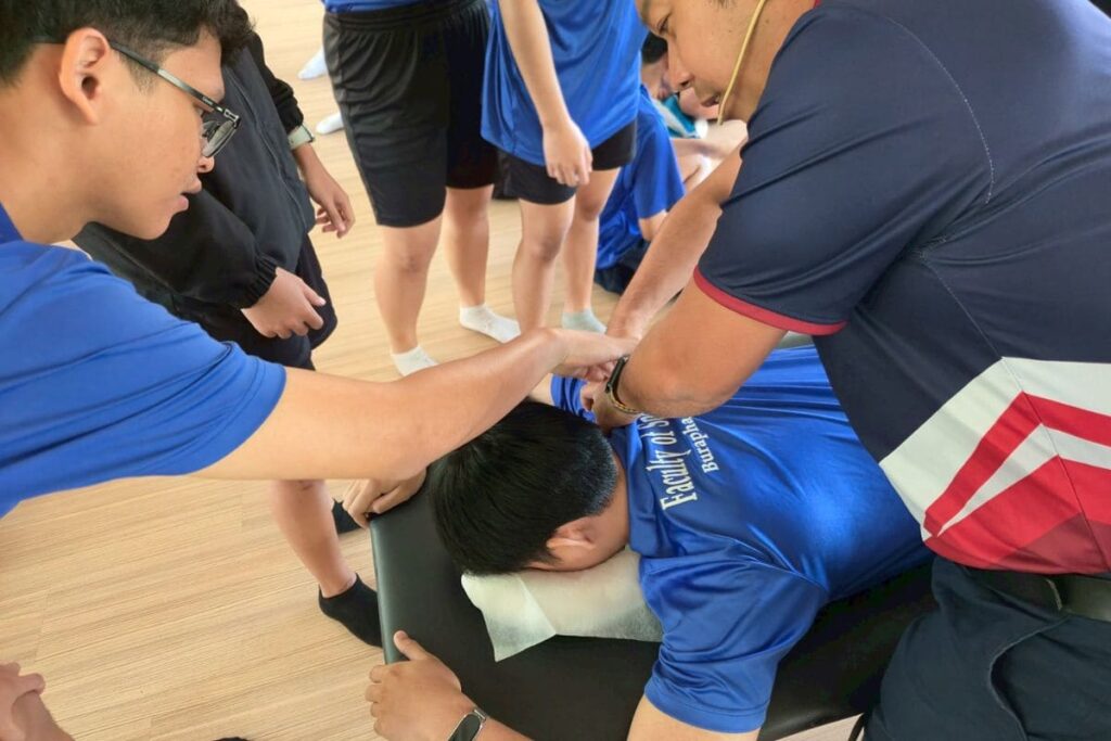 The center is committed to fostering professional personnel with knowledge and skills that match the demands of the Eastern region’s production and service sectors, society, and communities. Creating professional personnel equipped with relevant knowledge and skills to meet the needs of production and service industries, society, and communities in the Eastern region is paramount. Given this significance, the Sports Enterprise Center at the Faculty of Sports Science, Burapha University, has established a practical training workshop project to develop Sports Enterprise Center personnel for the fiscal year 2025. The program includes two courses: “Sports Massage Practitioner” to prepare Sports Enterprise Center practitioners to work efficiently and professionally, and provide quality services.