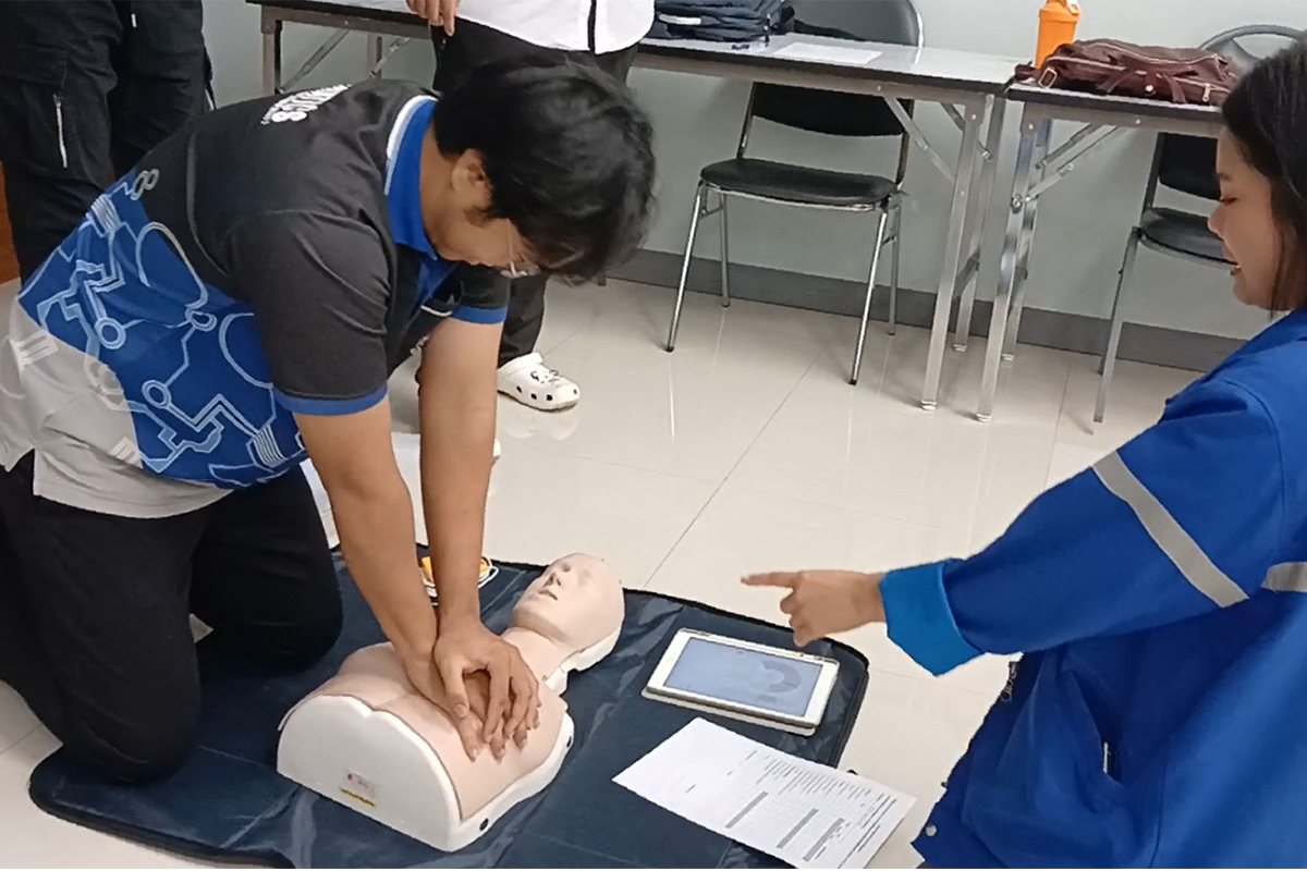 Currently, the leading causes of death among the population in Thailand are respiratory and cardiovascular diseases, heart disease, hypertension, and accidents. Patients or injured individuals may experience abnormal physical conditions, and in some cases, sudden respiratory or cardiac arrest. If left untreated for too long, even if resuscitation is eventually successful, permanent brain damage may occur. Therefore, timely and proper first aid, along with prompt and appropriate referral to medical professionals or healthcare facilities, significantly increases the chances of survival and recovery for patients or injured individuals. Basic first aid and life-saving skills training is thus an essential course that equips participants with accurate knowledge and hands-on experience, enabling them to effectively assist others in emergencies. The Faculty of Informatics, Burapha University, recognises the importance of this training, which aligns with Sustainable Development Goal 3 (SDG 3: Good Health and Well-being). Increasing the number of individuals trained in basic life-saving skills can help reduce mortality and disability from medical emergencies, empowering people with the knowledge and skills needed to respond to critical medical situations, such as sudden cardiac arrest, which remains a major cause of death.