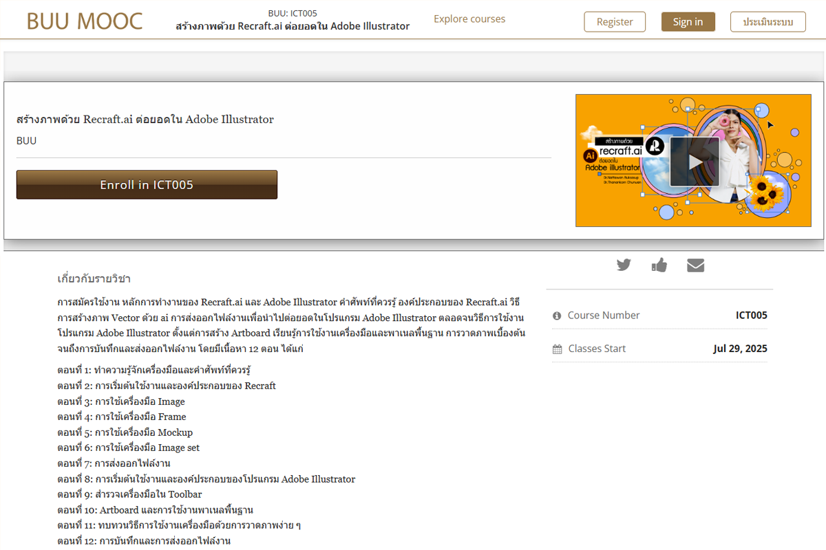 Subsequently, the course was integrated into the BUU MOOC platform, allowing learners to conveniently access the content anytime and anywhere. The project also incorporates continuous monitoring and evaluation to ensure course quality and relevance, while providing insights for future improvements that meet societal needs.